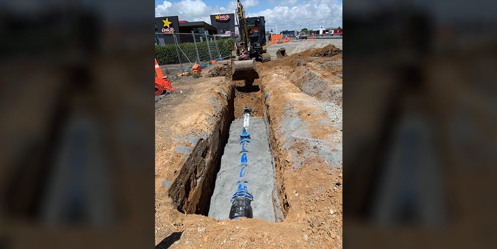Hygrade Water assisted Hynds Water’s collaboration with Downer Civil Project Team for the Watermain upgrade project at Auckland International Airport. The work had been meticulously planned as it involved cutting over on the main watermain line feeding the airport. Hygrade Water contributed to the project by supplying through Hynds Water multiple components for the project resulting in a successful outcome, including large diameter Hawle Valves, Gillies Ductile Iron Fittings, Viking Johnson Flange Adaptors, and Georg Fischer Electrofusion Fittings.
