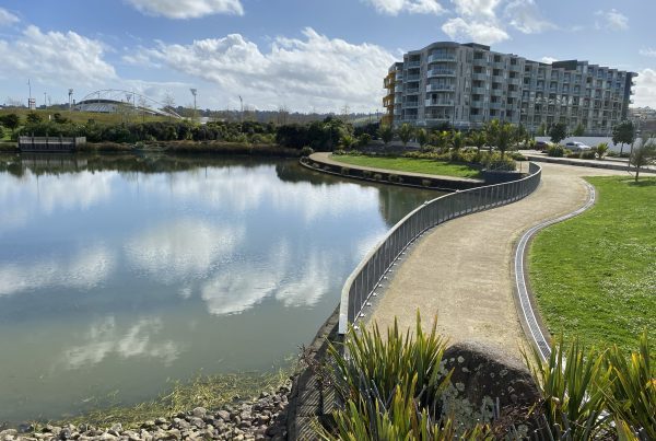 Prior to the 2011 Rugby World Cup, North Shore City Council decided to develop a new six-and-a-half-hectare park in Albany as a place for fans to gather to watch the…